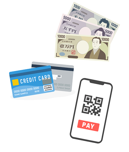 お支払いは、現金・クレジットカード・QRコード決済にご対応しております。